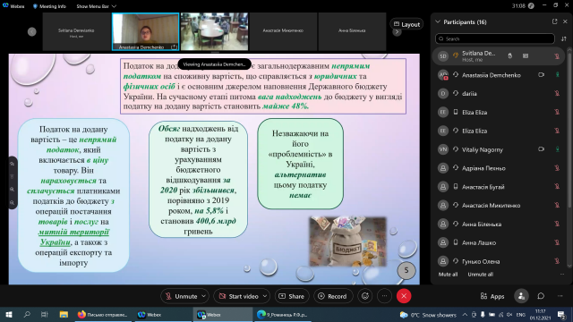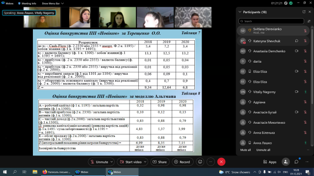 Обрані теми були цікаві та різноманітні, присвячені актуальним питанням бухгалтерського обліку, оподаткування, контролю, аудиту та аналізу. Результати роботи візуалізувались таблицями, графіками, діаграмами, що давало можливість повніше розкривати дослідження та окреслити пропозиції, винесені на захист.