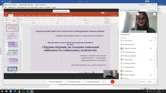 Так, 12 грудня 2020. завершила роботу Екзаменаційна комісія по захисту магістерських робіт студентами денної форми навчання економічного факультету із напряму підготовки «Економіка». До захисту було представлено 21 магістерська робота.