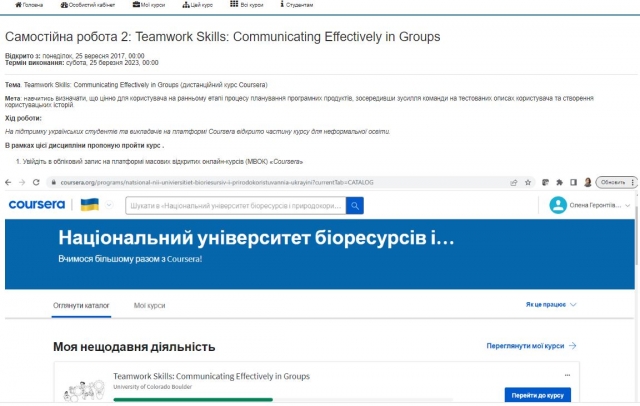 Також значну роль було приділено неформальній освіті: викладачі проводили консультації щодо добору відповідних МООС, на лекціях та додаткових заняттях відбувались обговорення окремих питань з рекомендованих у якості самостійних робіт курсів, результати виконання самостійних робіт стали підґрунтям реалізації лабораторних та проєктних завдань відповідно до програми вивчення дисципліни.