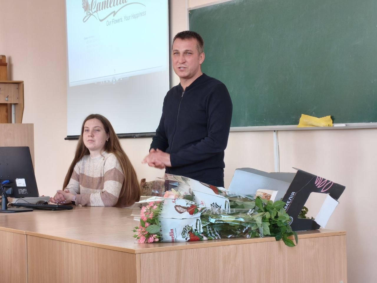 Одним із гасел компанії є: «Смаки у покупців різні, а вимога у всіх одна квіти повинні бути свіжими!». Що власне і побачили студенти, переглянувши фільм про компанію та отримавши в дарунок троянди від компанії. Дякуємо запрошеним гостям компанії «Камелія» Сергію ІЛЛЯШУ та менеджеру Анні за відкритість та цінні знання!