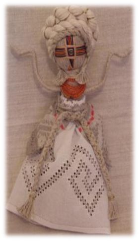 Мотанка – це й іграшка, й оберіг. У дохристиянські часи мотанки робили з найпростішого природного матеріалу – сіна, клаптиків тканини, ниток, стрічок. Люди знали, що лялька не може бути на когось подібною. Мати, створюючи донці іграшку, ніколи б не наважилась намалювати очі, ніс або губи. Замість людських рис у неї на обличчі хрест – символ Сонця.