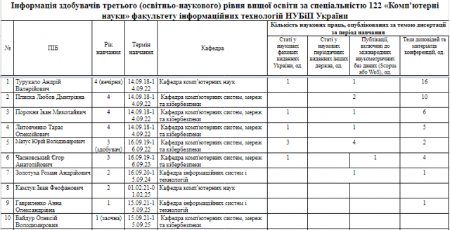 Відповідно до наказу НУБіП України від 20 квітня 2022 р. № 232 «Про проведення атестації аспірантів і здобувачів, які проходять підготовку у Національному університеті біоресурсів і природокористування України», була проведена атестація аспірантів та здобувачів факультету інформаційних технологій, які навчаються за освітньо-науковою програмою 122 «Комп’ютерні науки».
