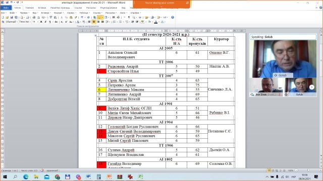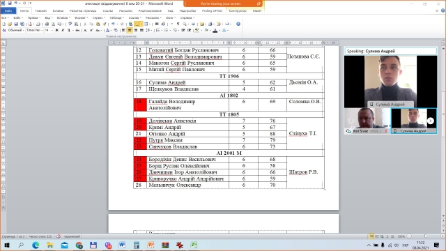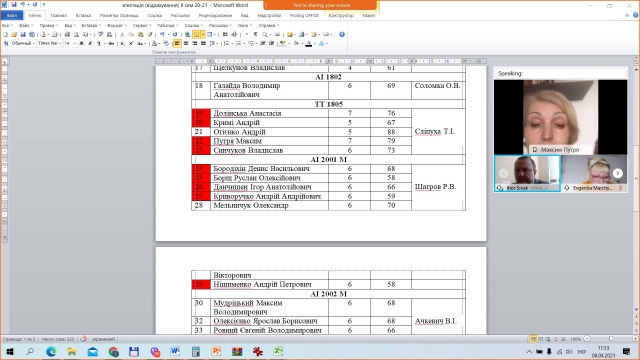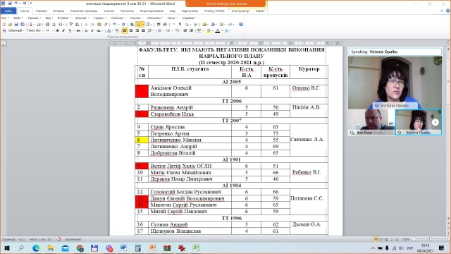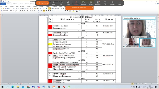 За результатами проміжної атестації, 8 квітня 2021 року, відбулося розширене засідання навчально-методичної комісії механіко-технологічного факультету, за участю завідувачів кафедр, старост і кураторів академічних груп, студентів, які мають низькі показники виконання умов навчального плану, а також, їхніх батьків.
