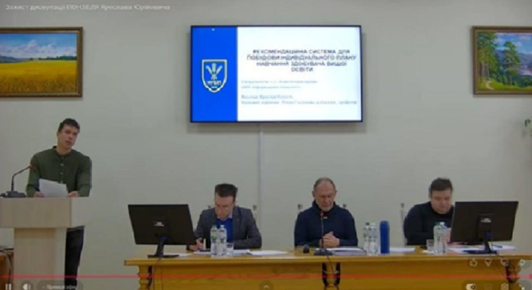 25 лютого 2026 р. (https://nubip.edu.ua/zakhyst-dysertatsiyi-ponzelya-yaroslava-yuriyovycha-na-temu-rekomendatsiyna-systema-dlya-pobudovy) відбулося засідання разової спеціалізованої вченої ради РСВР 181, присвячене захисту дисертації ПОНЗЕЛЯ Ярослава Юрійовича на тему: «Рекомендаційна система для побудови індивідуального плану навчання здобувача вищої освіти», поданої на здобуття ступеня доктора філософії зі спеціальності 122 «Комп’ютерні науки» галузі знань 12 «Інформаційні технології»: https://svr.naqa.gov.ua/#/defense/11727.