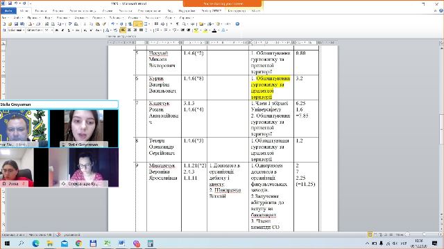 голови студентської організації факультету, С. Гройссман, студентського куратора 1 курсу, А. Андрощук, старости групи ТТ-1905, О. Кулібаби та старости групи АІ-1701, А. Гаврилко – проаналізувала додаткові бали студентів, які були отримані від старост академічних груп, на протязі семестру.