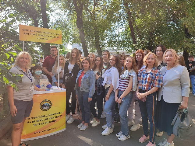 11 вересня 2021 року Центри соціальних служб м. Києва на безоплатній основі презентували професійні соціальні послуги для представників вразливих категорій населення, зокрема сім’ям з дітьми, наближено до місця їх проживання. І як завжди здобувачі першого (бакалаврського), другого (магістерського), рівнів вищої освіти спеціальності «Соціальна робота» та третього (наукового) рівня освітньо-наукових програм 011 «Освітні, педагогічні науки», 015 «Професійна освіта» Національного університету біоресурсів і природокористування України виступили волонтерами та учасниками освітнього квесту на Акції «Твоя соціальна служба поруч!».