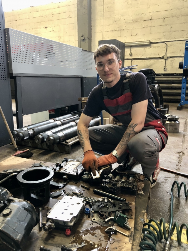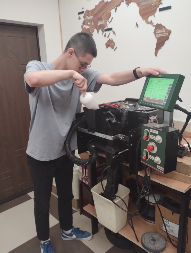 З величезним захопленням поринув у світ технічного сервісу ТОВ «АМАКО Україна», студент групи АІ 2101 Дмитро Сідолака. За його словами 6 тижнів практичного навчання пролетіли, ніби 1 день. Дмитро дізнався про особливості використання експлуатаційної рідини adBlu, для дизельних двигунів, детально розібрався з технічними можливостями сівалок для точного висіву просапних культур від PRECISION PLANTING, разом із сервісними інженерами виконав ремонт двигуна та коробки передач трактора Massey Ferguson 8737, дослідив функціональність навантажувачів Massey Ferguson TH. 7038 та 7035.
