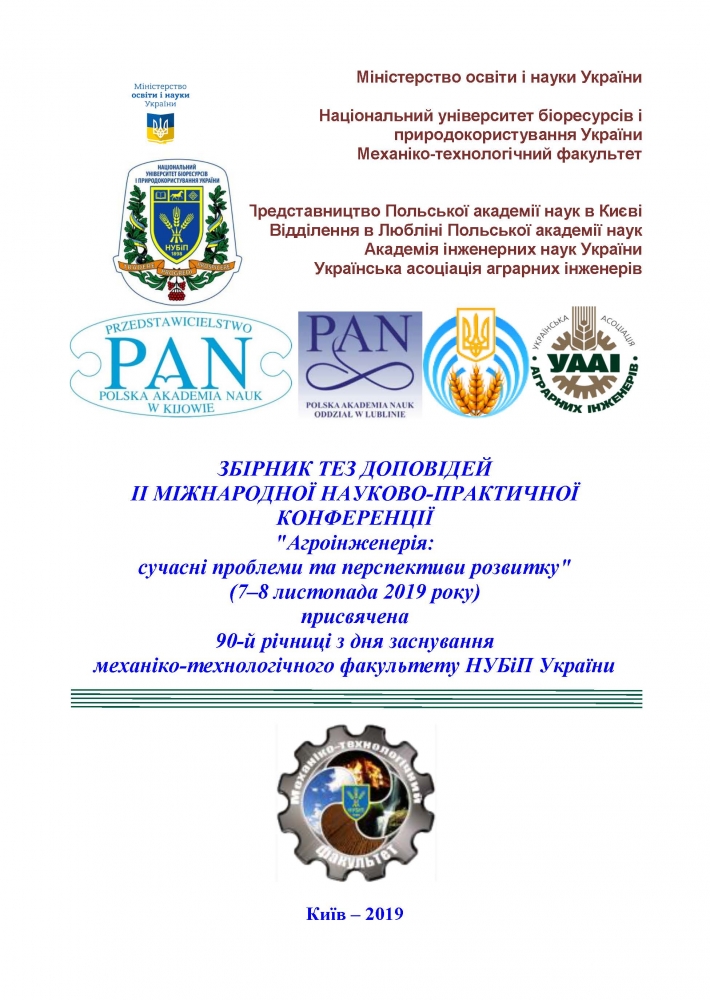 ІІ Міжнародної науково-практичної конференції "Агроінженерія: сучасні проблеми та перспективи розвитку", присвячена 90-й річниці з дня заснування механіко-технологічного факультету НУБіП України (7-8 листопада 2019 року). Національний університет біоресурсів і природокористування України. Київ. 2019. 269 с.