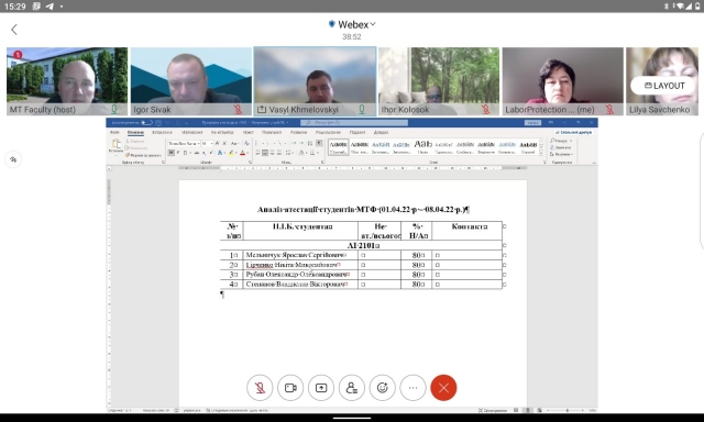 По кожній групі наставники звітували про роботу, проведену з студентами-боржниками. Аналізуючи причини низької успішності окремих студентів, виступаючі відмічали, що більшість випадків мають загальний характер. Деякі студенти знаходяться за кордоном, інші евакуювались в безпечніші місця всередині країни. Але практично у всіх переміщених осіб виникають проблеми з навчанням – і внаслідок стресових обставин, і внаслідок технічних складнощів. Багато з тих, хто лишився в Україні, скаржаться на поганий інтернет- зв'язок. Окремі студенти беруть участь в теробороні або займаються волонтерством.