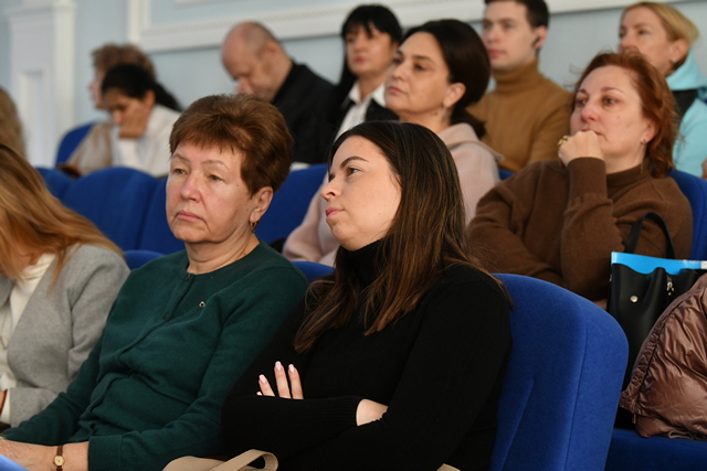 Завідувачка кафедри іноземної філології та перекладу Світлана Амеліна надала зведений аналіз діяльності кафедри та факультету в 2023 році та зупинилася на проблемах, які ми разом повинні вирішувати, перш за все якісно організованій профорієнтаційної роботі, що впливатиме на вступну кампанію 2024 року.