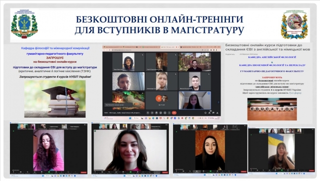 Цього року для абітурієнтів, які готувалися складати національний мультипредметний тест, проведено майстер-класи з написання мотиваційного листа, проводилися безкоштовні курси з підготовки до складання НМТ з української мови, історії України. Для вступу на магістратуру були організовані курси для випускників бакалаврату всього університету зі складання ТЗНПК.