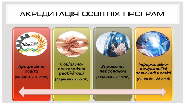 Чотири освітньо-професійні програми ‒ ОС «бакалавр» «Професійна освіта» та ОС «магістр» «Інформаційно-комунікаційні технології в освіті», «Управління персоналом», «Соціально-психологічна реабілітація» цього року успішно пройшли акредитацію. 2020 року започатковано і нову освітньо-професійну програму підготовки магістрів зі спеціальності «Психологія» та освітньо-наукову програму із цієї самої спеціальності.