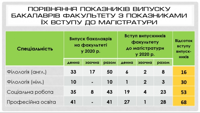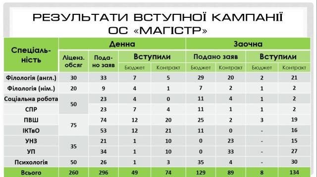 У магістратури 2020 року популярними були освітньо-професійні програми «Педагогіка вищої школи», «Інформаційно-комунікаційні технології в освіті», «Управління персоналом» і «Психологія».