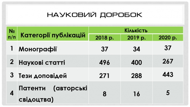 У 2020 році викладачі опублікували у виданнях, що входять до науковметричних баз Scopus та Web of Science, 37 статей.