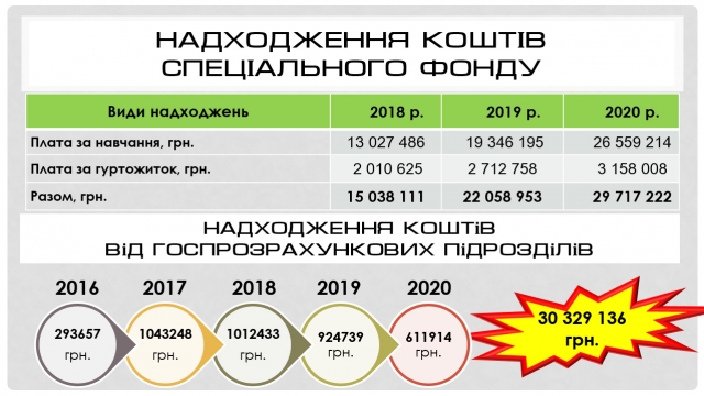 Надходження коштів від гуманітарно-педагогічного факультету до спеціального фонду університету за 2020 року станом на початок грудня становить понад 32 мільйони гривень.