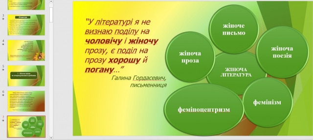 Уже на початку заняття лекторка зауважила, що образ нової жінки нашого часу – активної й емансипованої, став справжнім художнім відкриттям вітчизняної літератури кінця ХХ - початку ХХІ століття. Проза й поезія сучасних українських письменниць має давню інтелектуальну традицію, пов’язану з такими яскравими постатями української літератури, як Олена Пчілка, Леся Українка, Ольга Кобилянська, Наталя Кобринська, Олена Теліга та багатьма іншими авторками. Сьогодні в літературному просторі з’являються нові оригінальні письменниці, серед яких – колишні випускниці філологічних факультетів, журналістки, представниці культурної й політичної сфер. Така ситуація пояснюється загальною тенденцією емансипації суспільної свідомості, новими можливостями для жіночої професійної самореалізації.