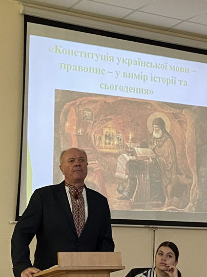 24 жовтня викладачі, аспіранти, студенти різних факультетів мали можливість ознайомитись із науковою й педагогічною майстерністю професора кафедри журналістики та мовної комунікації Миколи Степаненка. Предметом лекції стала безумовно актуальна проблема – конституція мови (правопис) із погляду історії та сьогодення.