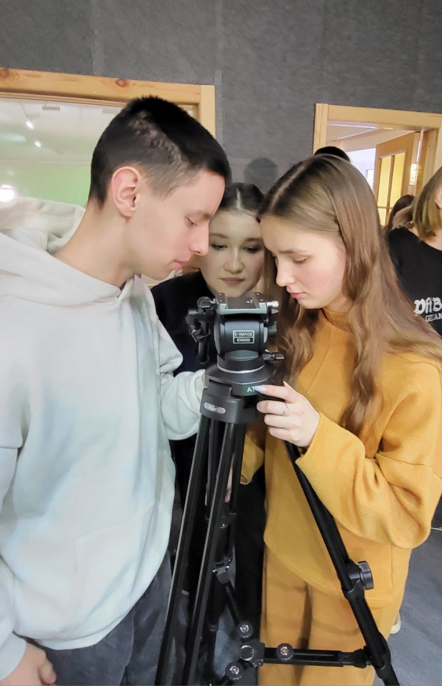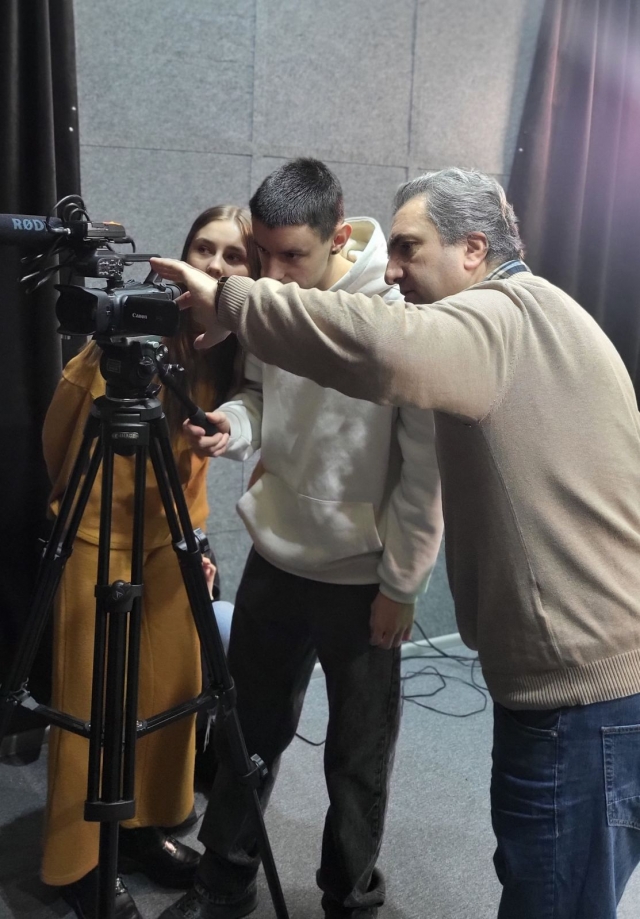 Навчання побудоване таким чином, щоб студенти працювали невеликими групками, не заважаючи один одному. Частина – працює з операторами в медіацентрі, частина – прописує сценарії сюжетів, шукає теми для знімання. Потім – змінюють один одного. І після практичних занять мають ще й годину теоретичних знань, коли викладач розповідає історію і теорію тележурналістики, аби вони розуміли контекст інформаційного поля, у якому працюють.