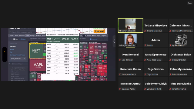 Значну увагу слухачів привернули й інтерактивні інструменти, застосовані доповідачами – наприклад, можливість долучитися до торгів на світових біржах, яку представила доцент кафедри організації підприємництва та біржової діяльності Валентина Яворська.