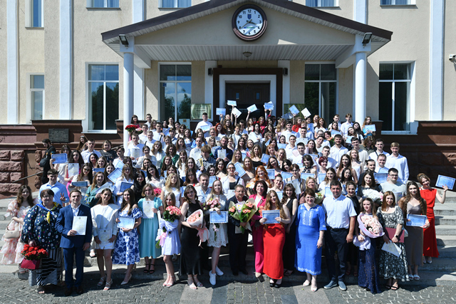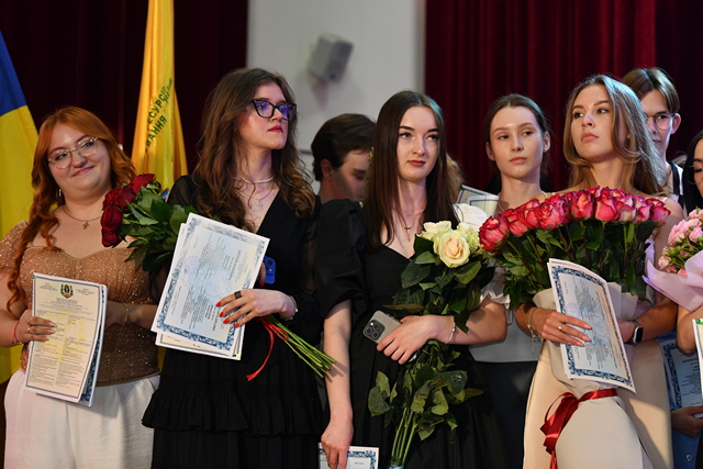 Багато квітів, щирі українські пісні, тепло обіймів, сльози і радість, відчуття великої родини і всеперемагаюча віра у Перемогу об’єднували присутніх у залі. Фінальне слово, як завжди – за випускниками: щирі слова подяки, зізнання у любові до рідної альма-матер, запевнення у тому, що майбутнє країни – в надійних руках, прозвучали із уст випускниці Анастасії Куцолабської і випускників, яким вдалося приїхати на вручення дипломів із ЗСУ – Анни Вакуленко, Богдана Гулідіна і Віталія Герасимчука. А з екрана до випускників і викладачів звернувся випускник воїн Юрій Мушик, дилом якого отримали дружина і син.