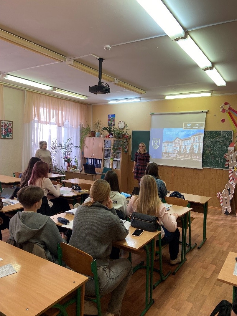 Вища освіта відіграє надзвичайно важливу роль у становленні особистості, її професійному зростанні та соціальній реалізації. Вона сприяє розвитку інтелектуального потенціалу, розширює можливості для самореалізації та підвищує рівень якості життя людини. Для проведення профорієнтаційної діяльності та презентації Національного університету біоресурсів і природокористування України як закладу, що забезпечує здобуття якісної освіти та перспективної професії, 20 березня 2026 року було організовано візит до Ліцею №323 Дарницького району міста Києва. У межах заходу доцент кафедри менеджменту ім. проф. Й. С. Завадського кандидат економічних наук Вікторія Вікторівна Сотник провела зустріч із учнями. Сприяння в організації заходу надала директор ліцею Алла Георгіївна Жукова.