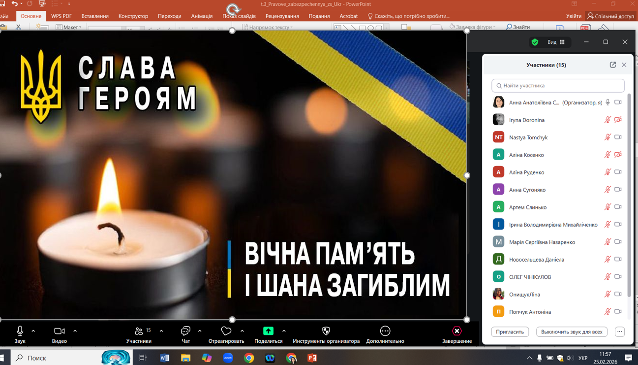 Зустріч розпочалася зі вшанування пам’яті загиблих Захисників і Захисниць України хвилиною мовчання. Присутні віддали шану всім, хто віддав своє життя за свободу та незалежність нашої держави.