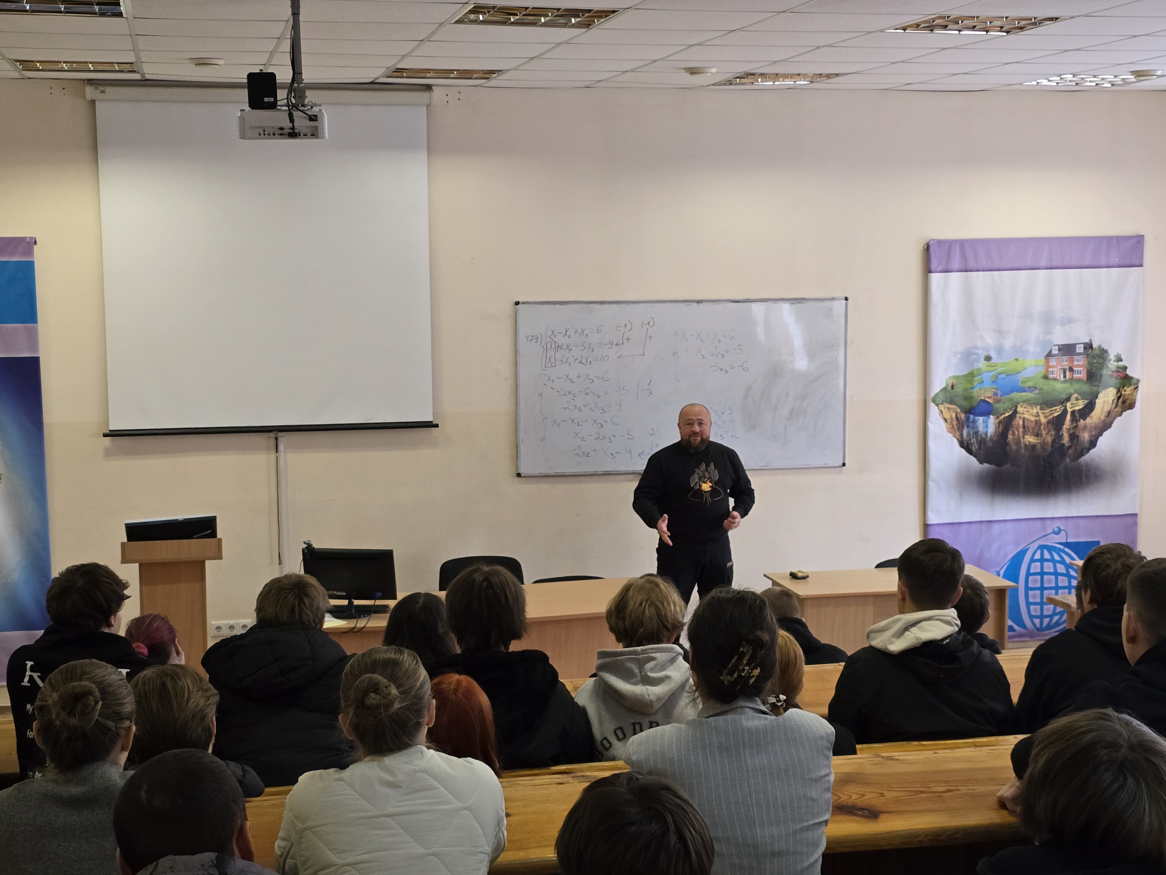 Олексій СТРЕБКОВ – уродженець Донецька, офіцер корпусу «Азов», чоловік загиблої захисниці Наталії СТРЕБКОВОЇ («Зоряна»). Йому довелося пройти складний шлях від цивільного життя до служби у війську, пережити оборону Маріуполя та полон в Оленівці. У розмові зі студентами він наголосив, що важливо не перетворювати День захисників на формальність. За його словами, значно цінніше не просто покласти квіти, а зателефонувати знайомому військовому, поцікавитися його справами й запитати, чим можна допомогти.