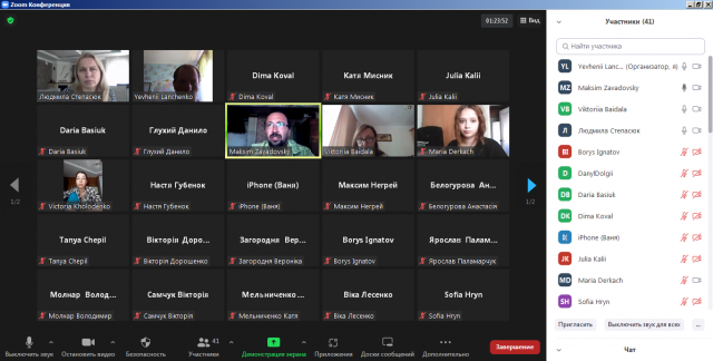 Після основної частини промови гостя відбулося обговорення у форматі діалогу за основними напрямами роботи економічної служби підприємства, зокрема йшла мова про планування обсягів виробництва й персоналу, режими праці й відпочинку, оптимізацію структури заробітної плати. Далі пішла мова про те, що в компаніях варто формувати корпоративну культуру, забезпечувати соціальну відповідальність даного бізнесу, розвивати інвестиційний напрям. Під кінець зустрічі з нашими студентами завідувачка кафедри економіки Вікторія Володимирівна Байдала подякувала Максиму Анатолійовичу Завадовському за приділений час. Гарант освітньої програми підготовки економістів Людмила Михайлівна Степасюк зазначила актуальність таких зустрічей із досвідченими практиками економічної роботи в підприємствах різних галузей економіки, що забезпечує якісний навчальний процес. Завдяки цьому поєднуються теоретичні й практичні підходи до підготовки компетентного високопрофесійного фахівця економічного профілю на економічному факультеті нашого університету. Гарант ОП «Економіка підприємства», доцент кафедри економіки Степасюк Л. М.; доцент кафедри економікиЛанченко Є. О.