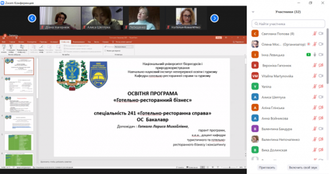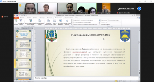 З першим враженнями навчання на ОПП «Міжнародний туристичний бізнес» поділились здобувачі другого (магістерського) рівня вищої освіти, які навчаються на даній ОПП: Євген АНІСІМОВ та Богдан МАТКОВСЬКИЙ. Здобувачі зазначили, що в ОПП варто більш яскраво висвітлити специфіку НУБіП України – ЗВО, який позиціонує себе як Університет наук про життя. Доцільно ввести дисципліни з екологічним спрямуванням, більше про зелений туризм. В обговоренні пропозицій здобувачів взяли участь всі зацікавлені особи, в результаті прийшли до думки, що є доцільним ввести в ОПП дисципліну «Бізнес-планування осель сільського зеленого туризму», який буде поєднувати реальну комерційну ідею, попит на яку є на міжнародному туристичному ринку, також задіяні бізнесові складові, підприємництво, екологія тощо.