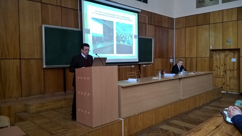Доповідь декана висвітлила основні здобутки в основних напрямках роботи як адміністрації, так і кафедр. У 2017 році факультет плідно попрацював, відповідно, звітувати є чим. Але початок своєї доповіді Ярослав Миколайович почав з загроз, які стоять перед нашим університетом. Складні часи сьогодення диктують жорсткі умови виживання в сучасному навчальному та науковому просторі. Кожному співробітникові факультету потрібно прикладати максимум зусиль для покращення результативності роботи на усіх напрямках.