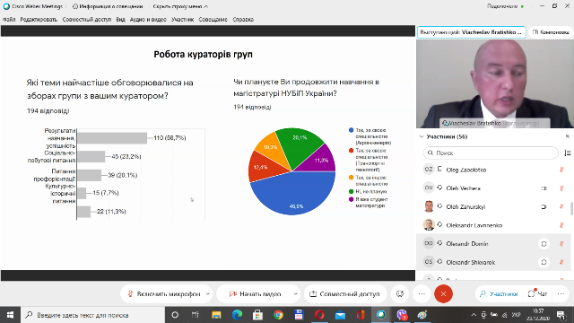 Навчальний процес завжди є і буде у центрі уваги діяльності факультету. Декан надав дані соціологічного опитування студентів, стосовно організації дистанційного навчання, які показують, що 96% студентів наполегливо опановують дисципліни на електронній платформі університету, хоча 25% з них офіційно влаштовані на роботу за договорами. Позитивно відмітити зростання кількості відмінників та захист кваліфікаційної випускної роботи всіма здобувачів вищої освіти ОС «Магістр». На наступний рік факультет вводить систему реєстрації відвідування занять студентами на базі платформи Atoms.