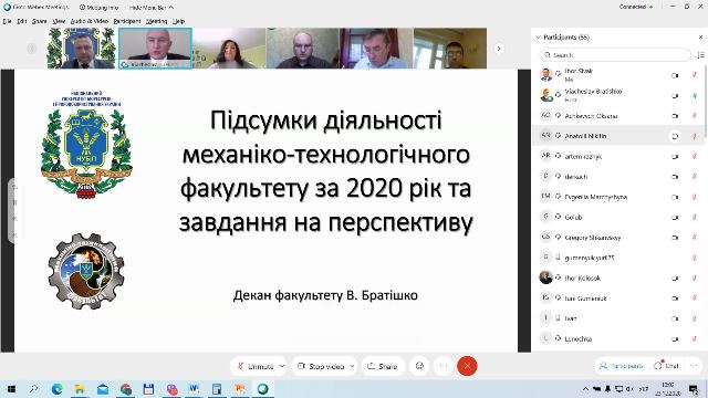 Завершення року для трудового колективу механіко-технологічного факультету завжди є періодом підведення підсумків діяльності за звітний період, корегування курсу розвитку та формування майбутніх планів функціонування. У такому ключі, 24 грудня 2020 року, на механіко-технологічному факультеті, за участю ректора університету, Станіслава Ніколаєнка, відбулися збори трудового колективу, на яких був заслуханий звіт декана факультету Вячеслава Братішка.