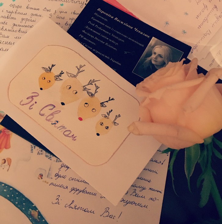 Для першокурсників викладачі - найрідніші люди у новому дорослому житті. Ми, викладачі, маємо честь і водночас відчуваємо велику відповідальність бути вчителем, другом для першокурсників. Спілкуючись зі студентами, ми продовжуємо самоудосконалюватися, навчання триває впродовж всього життя (life–longlearners). Час змінюється: сучасні студенти ерудовані й розумні, вони прагнуть спілкуватися із тим, хто знає більше від них. Шукають того, хто допоможе їм розвиватись професійно, - ділиться враженнями доцент кафедри української мови НУБіП Вероніка Василівна Чекалюк. - За програмою курсу «Українська мова за професійним спрямуванням» вивчаємо документознавство, й листування зокрема. Лист – це один із видів комунікації. Від його змісту та оформлення залежить те, якими будуть подальші стосунки адресата і адресанта. Тож вирішили до новорічних свят підготувати листівки кураторам і декану факультету. Маленькі знаки уваги щодня будуть фундамент дружби на многая літа».