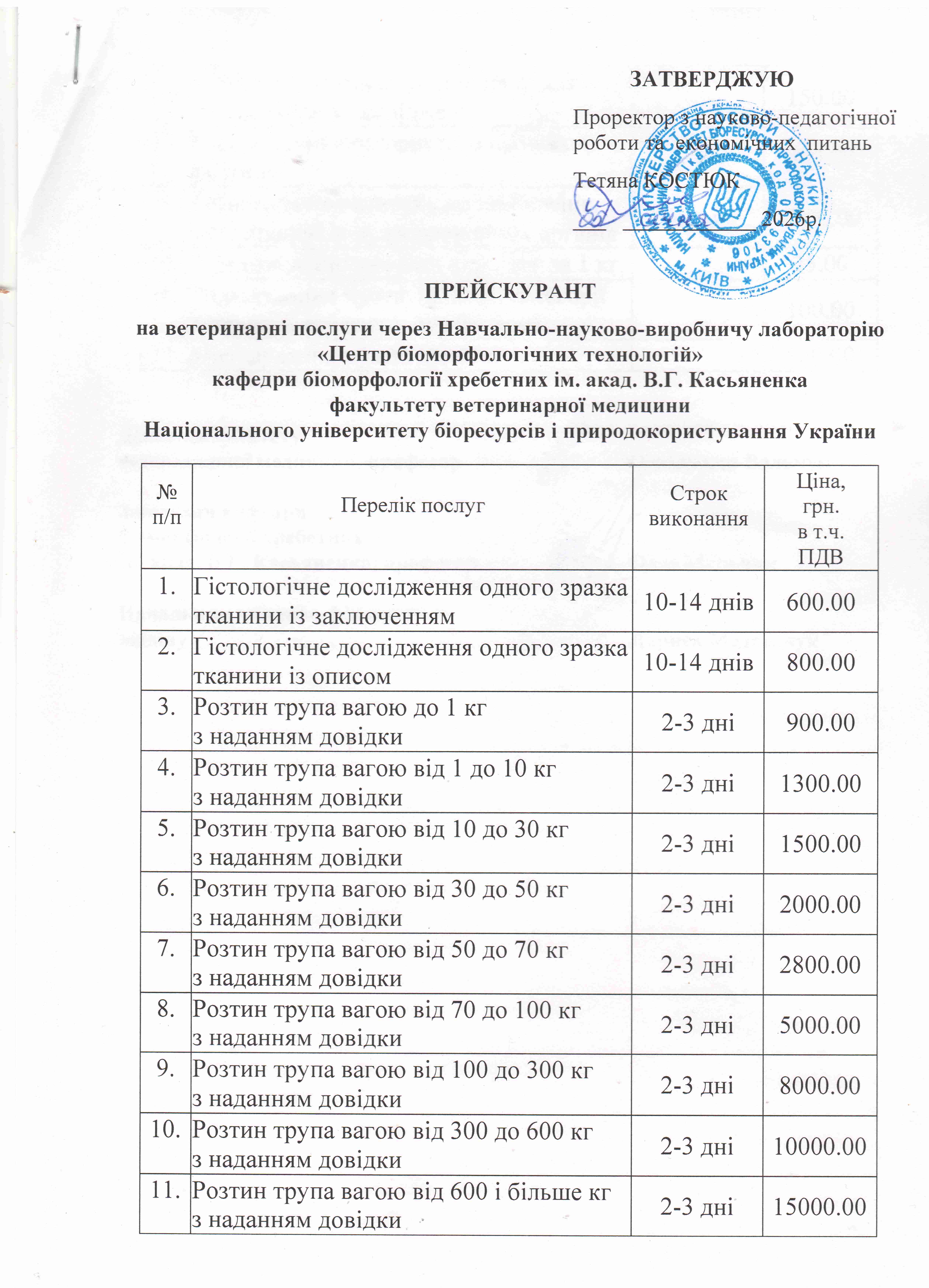 Навчально-науково-виробнича лабораторія «Центр біоморфологічних технологій» є навчальним, науковим та виробничим підрозділом кафедри біомолофології хребетних ім. акад. В.Г. Касьяненка факультету ветеринарної медицини Національного університету біоресурсів і природокористування України, що окрім забезпечення навчального процесу та проведення наукових досліджень надає послуги практикуючим лікарям ветеринарної медицини у проведені гістологічних досліджень та посмертної діагностики хвороб тварин.