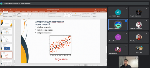 Друга доповідь студента Юрія Кравченко була зорієнтована на розгляд особливостей побудови моделей керованого навчання (класифікації та регресії) за допомогою сучасних інформаційних технологій та програмних продуктів.