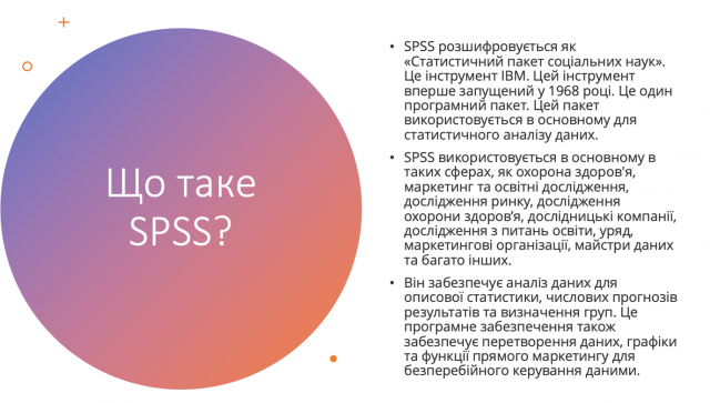 На закінчення засідання були розглянуті особливості застосування ППП SPSS як комплексного інструменту статистичного аналізу даних. Відповідну доповідь презентував студент Тарас Пшеничний.