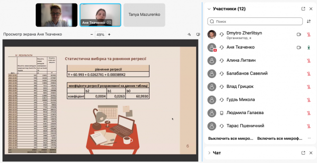 Всі доповіді були цікаві та змістовні. Студенти показали високий рівень володіння моделями та методами сучасної економетрики, а також теоретичними знаннями у сфері економіки природокористування та можливості їх застосування на практиці.