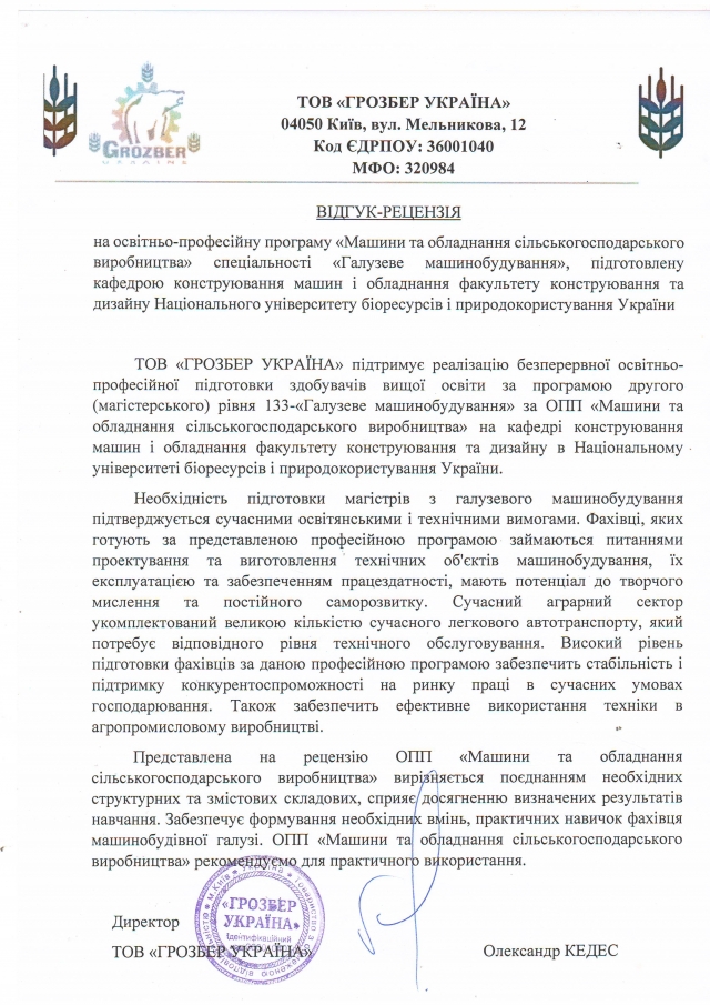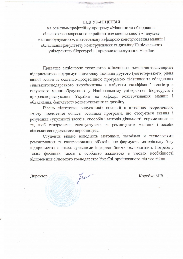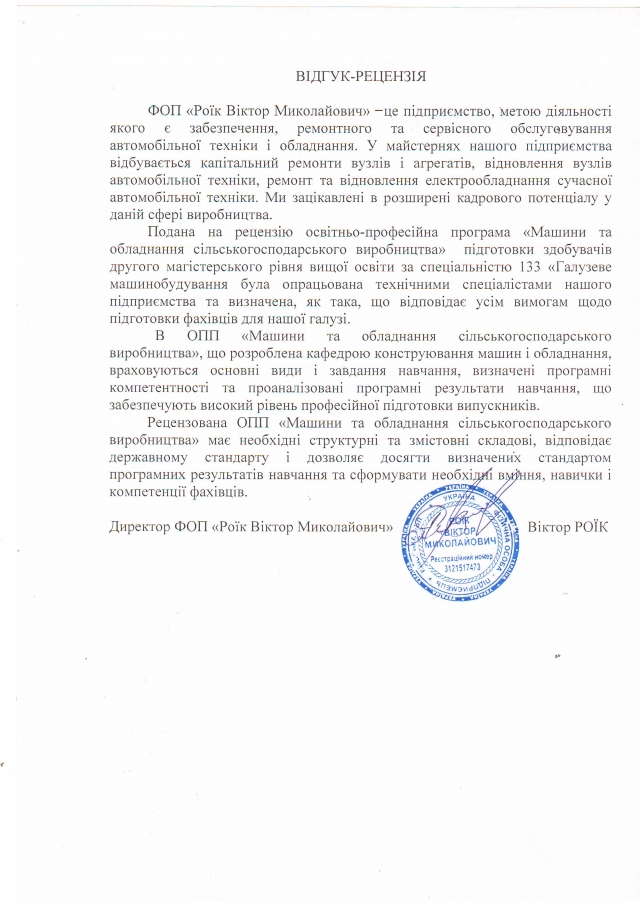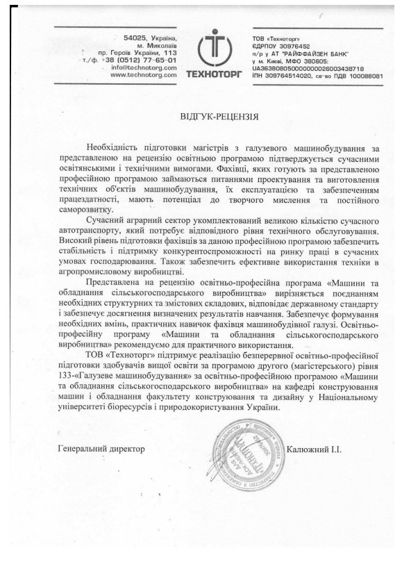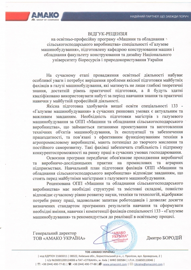 Договір з Інститутом механіки та автоматики агропромислового виробництва (ІМААПВ НААН)
