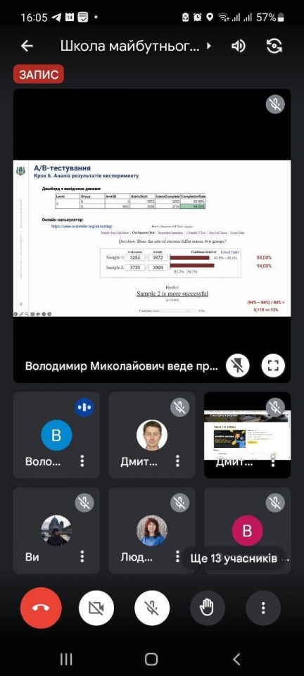 Під час практикуму також було розглянуто теорію та особливості застосування А/В тестування, яке допомагає підвищити ефективність та збільшити прибуток як окремих підприємців ІТ-шників, так і великого бізнесу. Практичними знаннями поділився доцент кафедри економічної кібернетики Володимир Кравченко.