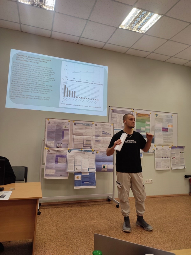 Захист магістерських кваліфікаційних робіт спеціальності 051 «Економіка» освітньо-професійної програми «Економічна кібернетика» розпочався 15 листопада 2023 року в змішаному форматі на дві з половиною години пізніше, запланованого часу, у зв’язку з оголошеною повітряною тривогою. Але це ніяк на вплинуло на настрій магістрів та успішні результати захисту.