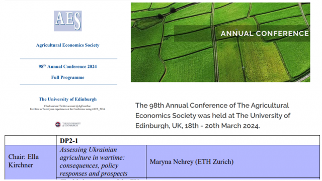 Нещодавно завершилася 98-ма Щорічна конференція Товариства аграрної економіки (AES), що відбувалася з 18 по 20 березня у м. Единбург, Великобританія, учасники якої збагатилися новими знаннями та ідеями. Конференція охопила широкий спектр тем, включаючи сталі сільськогосподарські практики, продовольчу безпеку та економічний вплив зміни клімату на сільське господарство.