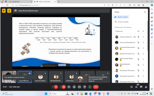 Доповідач Микола Гудзь зосередився на темі «Моделювання та прогнозування цін криптовалют на основі ковзних середніх»