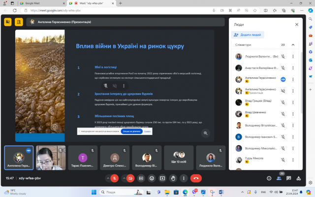 Учасники конференції вели діалог про ціни на криптовалюти та виклики аграрних ринків в умовах війни. Було висловлено багато ідей та думок, і секція завершилася на позитивній ноті. Було підтверджено важливість таких заходів для молодих дослідників та для обміну досвідом.
