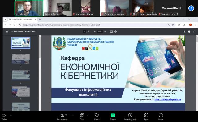Перш за все Володимир Віталійович ознайомив школярів з факультетом інформаційних технологій НУБіП України та розповів про кафедру економічної кібернетики. Він детально розповів про історію кафедри, її наукові досягнення та роль у підготовці фахівців у сфері цифрових технологій та економіки.