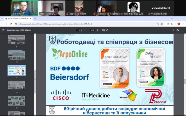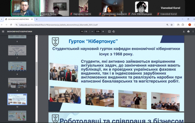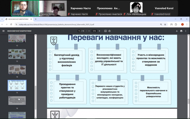 Окрім цього, Володимир Харченко розповів про можливості стажування студентів у провідних компаніях України, участь у міжнародних проєктах і грантах, а також про перспективи подальшого працевлаштування. Було наведено приклади успішних випускників, які працюють у сфері фінансового аналізу, IT-консалтингу, управління бізнес-процесами та розробки програмного забезпечення для економічного моделювання.