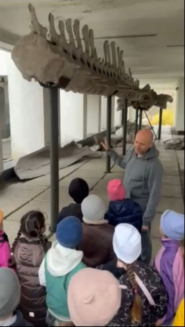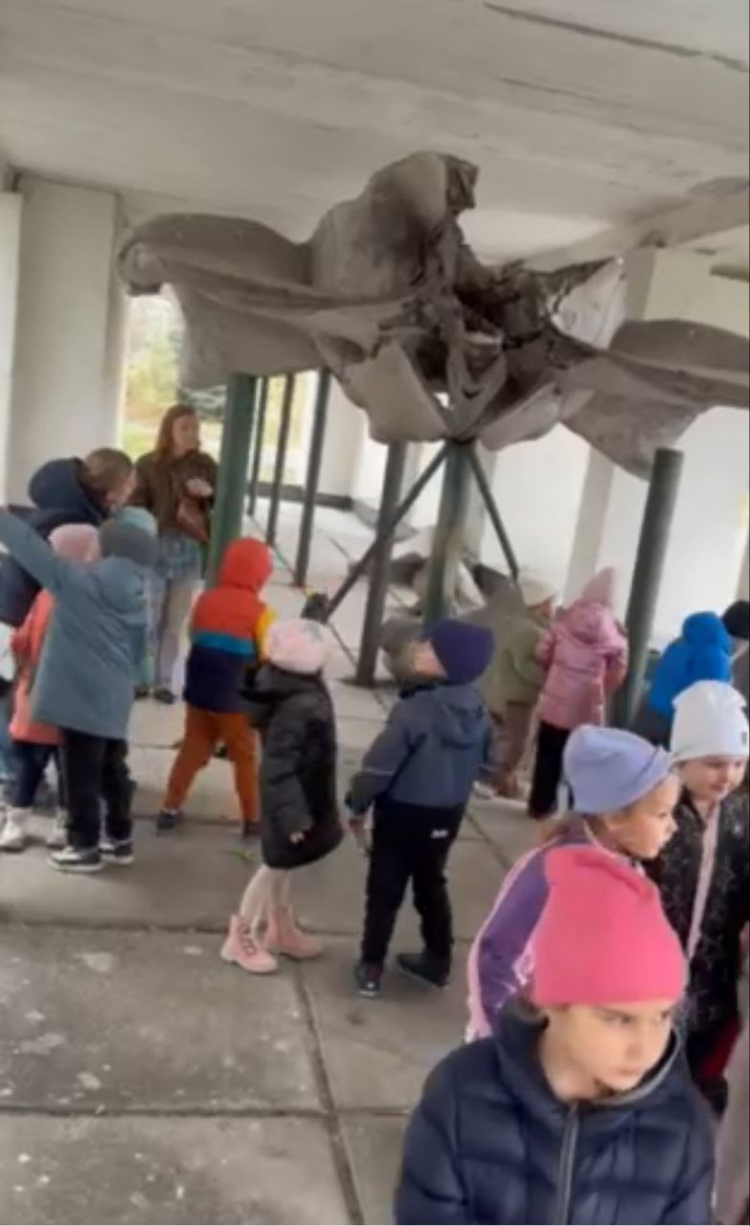 Особливою подією стала зупинка біля величезного скелета синього кита, що розташований біля корпусу факультету ветеринарної медицини. Це відкриття викликало у дітей щире здивування та захоплення – адже не щодня можна побачити залишки найбільшої тварини планети!