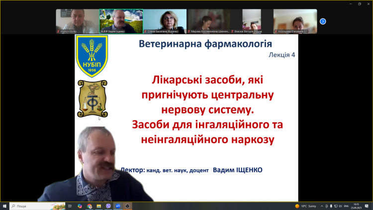 25 вересня 2025 р. доцент кафедри фізіології хребетних і фармакології Іщенко Вадим Дмитрович відкриту лекцію з дисципліни «Ветеринарна фармакологія» для студентів 3 курсу ОС «Магістр» спеціальності 211 «Ветеринарна медицина» на тему: «Лікарські засоби для неінгаляційного та інгаляційного наркозу».
