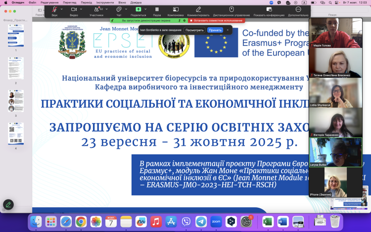 Наші студенти – активні члени наукового гуртка «Менеджмент і сьогодення» – 7 жовтня 2025 року долучилися до презентації серії освітніх заходів, організованих у межах імплементації проєкту Erasmus+, модуль Жан Моне «Практики соціальної та економічної інклюзії в ЄС».