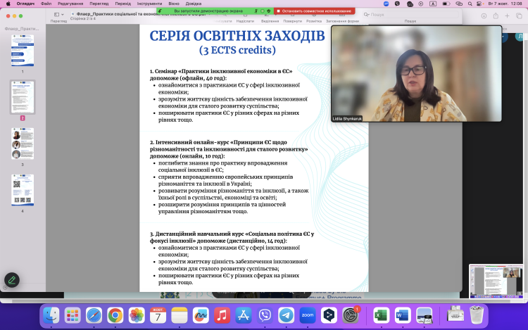 Особливу увагу було приділено дистанційним навчальним курсам, що входять до серії заходів, зокрема курсу «Соціальна політика ЄС в фокусі інклюзії», який спрямований на глибше розуміння механізмів подолання соціальних дисбалансів та забезпечення рівної участі різних соціальних груп у суспільно-економічному житті.