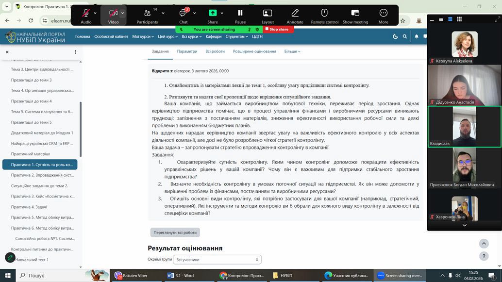 У середу, 4 лютого 2026 року, всі здобувачі третього року навчання ступеня доктора філософії кафедри виробничого та інвестиційного менеджменту успішно провели практичні заняття. Віктор ПОГНЕРИБКО та Роман СТЕПАНЬКОВ провели пари з дисципліни «Операційний менеджмент» для студентів третього курсу спеціальності «Менеджмент». Владислав ЦИКУНОВ та Богдан ПРИСЯЖНЮК провели заняття з курсу «Контролінг» для студентів третього курсу освітніх програм «Менеджмент» та «Менеджмент міжнародного бізнесу». Теми практичних занять відповідали робочій програмі вказаних навчальних дисциплін та були спрямовані на закріплення у студентів теоретичних знань, отриманих під час лекцій.